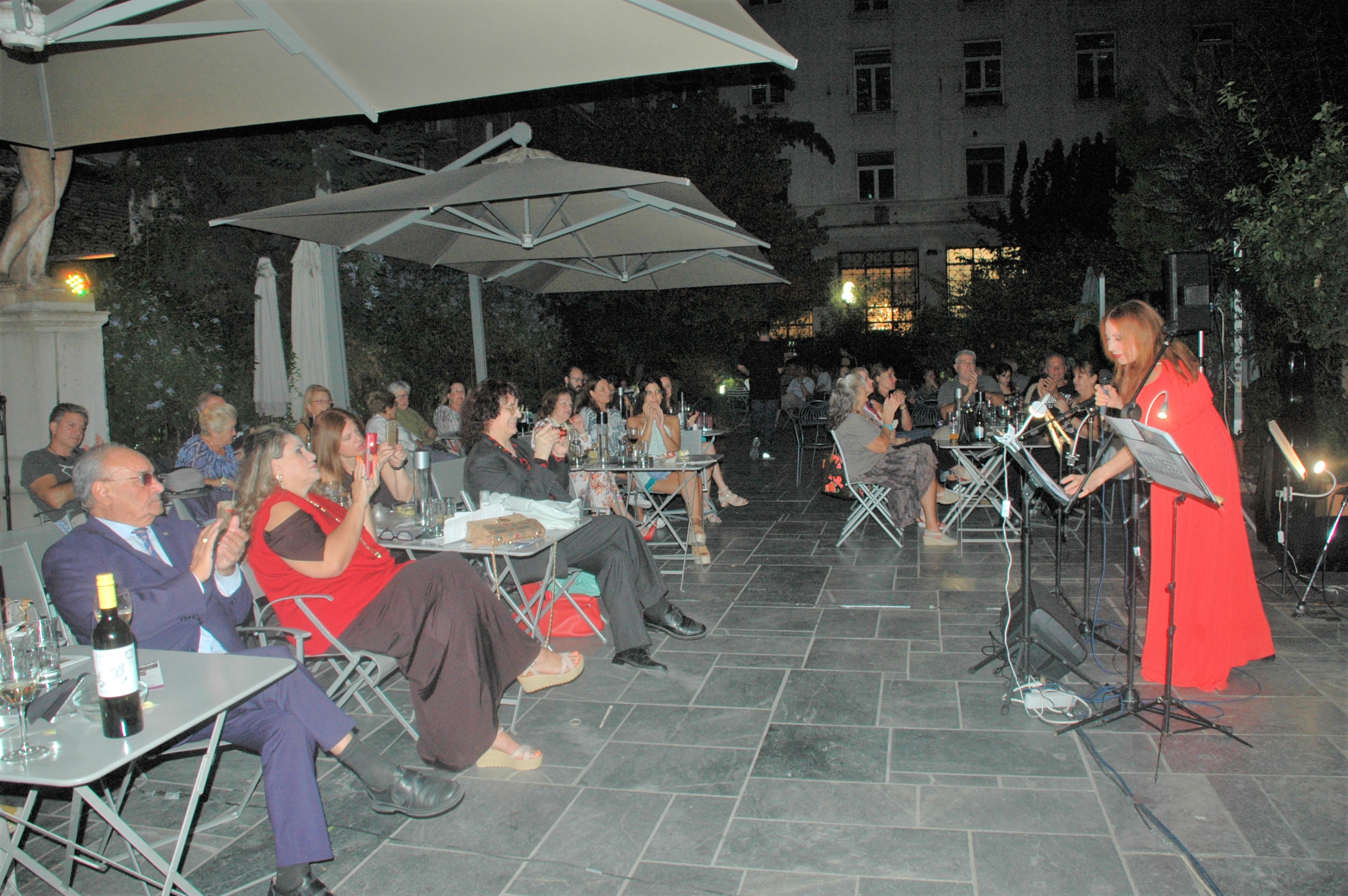 Παρουσιάστηκε ο «Κύκλος έντεχνων και λαϊκών τραγουδιών» του Παναγιώτη Καρούσου σε μελοποιημένα ποιήματα μεγάλων ελλήνων και ξένων ποιητών και αποσπάσματα από τις όπερες «Προμηθέας Δεσμώτης» του Αισχύλου και «Ιλιάδα του Ομήρου». Πρόγραμμα: Καρυάτιδες (Ιωάννης Πολέμης) – Χορωδιακό, Παρθενώνας (Κωστής Παλαμάς) - Διπλάρος Παναγιώτης & Ρέα Βουδούρη & Χορωδία, Romance για βιολοντσέλο και πιάνο - Δημήτρης Κοτταρίδης (βιολοντσέλο), Άρια Ωραίας Ελένης (Ιλιάδα του Ομήρου) – Ρέα Βουδούρη, Σ’ έναν παλιό Ναό (Μιλτιάδης Μαλακάσης) – Δάρρειος Γιάννης, Ανάμνησης (Διονύσιος Σολωμός) - Αργύρης Κοντονικολάου, Automne (Guillaume Apollinaire) Κλεοπάτρα Ελευθεριάδου, Το Παιδί στο ποτάμι (Γεώργιος Βιζυηνός) – Κλεοπάτρα Ελευθεριάδου & Διπλάρος Παναγιώτης, Βασιλιά μου (Αννίτα Τσαπάλου) – Δάρρειος Γιάννης & Ρέα Βουδούρη, Η Μαγεμένη βρύση (Κώστας Κρυστάλλης) – Μαρία Κιόρογλου, Love is Life - Πόλεμος και ειρήνη (Λέων Τολστόι) – Δημήτρης Κοτταρίδης (βιολοντσέλο), Εσύ η γλυκιά (Γεώργιος Δροσίνης) Ρέα Βουδούρη, Κόρη των Αθηνών (Λόρδος Βύρων) – Διπλάρος Παναγιώτης, Προμηθέας Δεσμώτης – Χορωδιακό (Προμηθέας Δεσμώτης του Αισχύλου), Η Ασπίδα του Αχιλλέα – Χορωδιακό (Ιλιάδα του Ομήρου). Τιμητική συμμετοχή: Νάντια Καραγιάννη με τον Ανδρέα Πριονά στο πιάνο: Το παιδί στο ποτάμι (Γεώργιος Βιζυηνός), Αύριο φως (Αλέκος Παναγούλης), Καρυάτιδες (Ιωάννης Πολέμης), Τώρα που λείπεις (Τέλος Άγρας), Στο νυχτερινό κέντρο (Ναπολέων Λαπαθιώτης), Μπαλάντα της απόδρασης (Δημήτρης Ιατρόπουλος), Το πόσο σε λατρεύω (Γιάννης Βηλαράς).